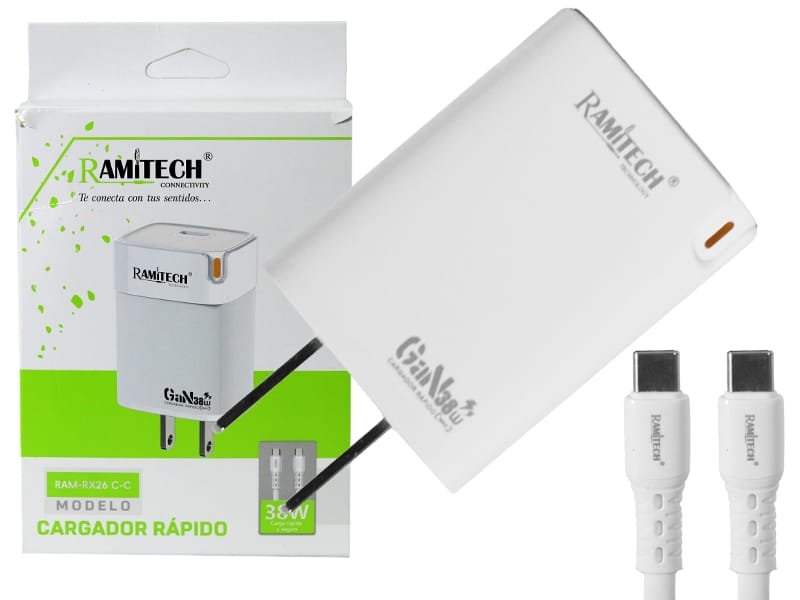 C-C Cargador Para Celular 38w Carga Rapida Con Cable Tipo C A Tipo C Ramitech