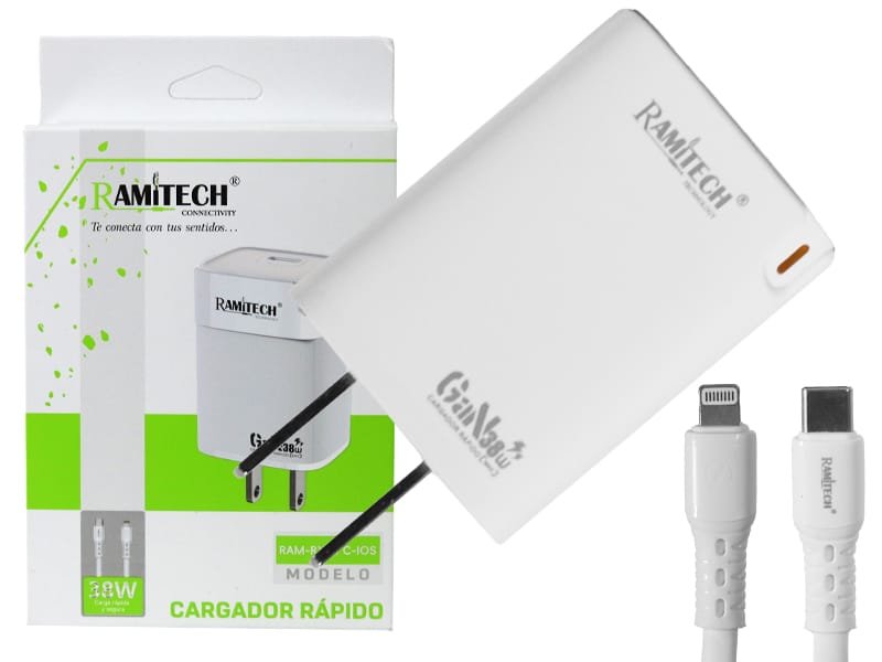 C-IOS Cargador Para Celular 38w Carga Rapida Con Cable Tipo C A Lightning Ramitech