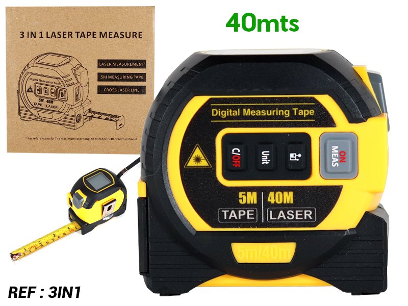 Cinta métrica laser digital 40 metros, flexómetro 5 metros, bateria AAA